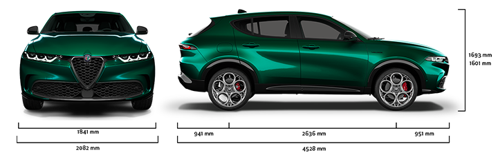 Alfa Romeo Tonale Ibrida Plug-in Q4 má dĺžku 4528 mm, výšku 1693 mm a šírku 2082 mm. Batožinový priestor má objem 385 litrov, ktorý sa po sklopení zadných sedadiel zväčší na 1430 litrov. Vozidlo je k dispozícii s 19'' a 20'' diskami z ľahkej zliatiny.
